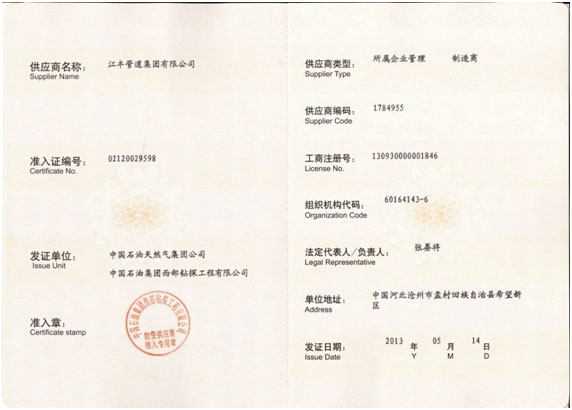 中石油物資準(zhǔn)入證